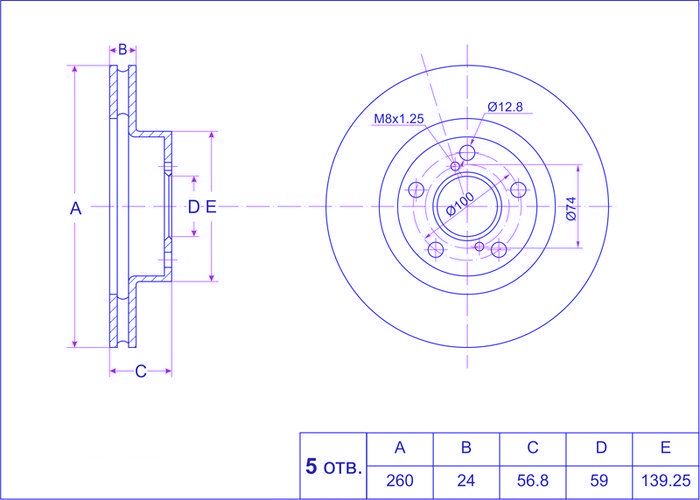 Диск тормозной /передний /TI-GUAR для SUBARU Legasy B#1989-2003, Impreza GD GF GG 1992-2007; 260/24мм; TG-26310-AA021 RN1091 26300AE090 26300AE091