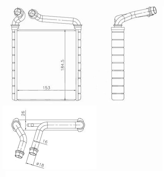 Радиатор отопителя /TI-GUAR для SKODA Superb 2008- Yeti Volkswagen Golf 2003- Passat 2005- Tiguan 2007-; TG-RIH0018; STAU07395A0 NDE2116 73979