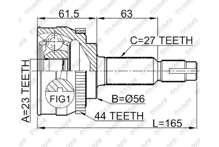 ШРУС наружный /TI-GUAR для Nissan Bluebird #U14 1991-, Primera Camino #P11 1995- /ABS /23*56*27; TG-7434Z44; (NI-034A44 0210034A44) 391003J110 392110E015 JCT0029A