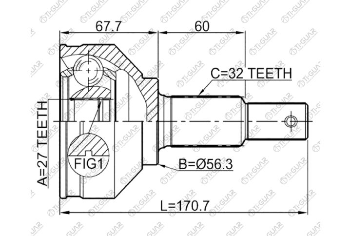 ШРУС наружный /задний правый /левый /TI-GUAR для Nissan Teana 2008- PJ32 3.5L VQ35DE; 27*56*32; TG-7488; (0210-J32 NI-088) 392111AA0A 0210J32 CO3677