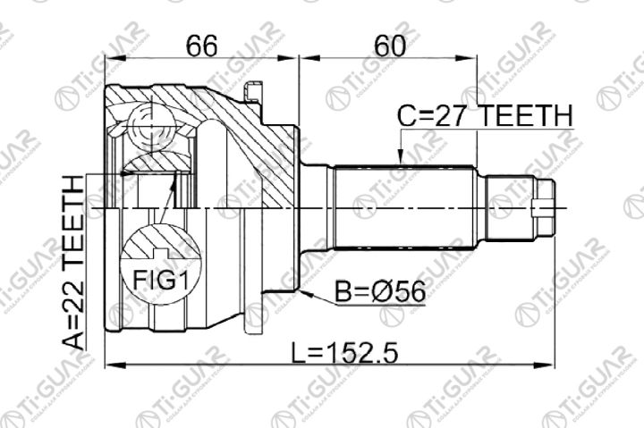 ШРУС наружный /правый /левый /TI-GUAR для Subaru Legacy 1989-1993 BC BCK BC3 BF3 BC5 BF5 BCM BFA BF7 BFB; 22*56*27; TG-9107; (0810-007 FU-007) 28021AA003 28021AA011 28021AA012
