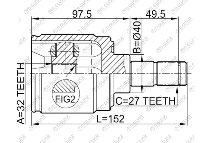 ШРУС внутренний /правый /TI-GUAR для Honda Civic Ferio Domani Integra S-MX Stepwgn CR-V Odyssey 1994-19994-1999; 32*40*27; TGIN4404; (0311CRVATRH) 44310S10A00 CI3400